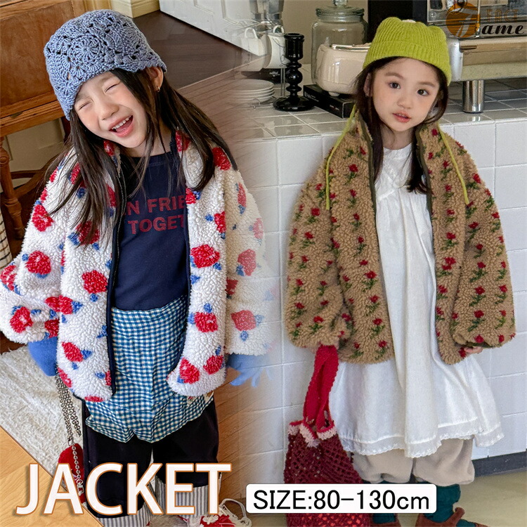 韓国子供服 アウター ボア ジャケット コート 女の子 冬 子ども服 綿入りコート 花柄 羊羔ボア ふわふわ もこもこ 防寒 あったか カジュアル ナチュラル キッズファッション 80cm 9 可愛い