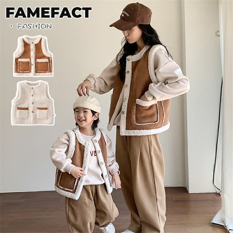 キッズ ボア ベスト ボアコート 親子ペアルック カップル カジュアル 記念日 写真撮影 旅行 プレゼント