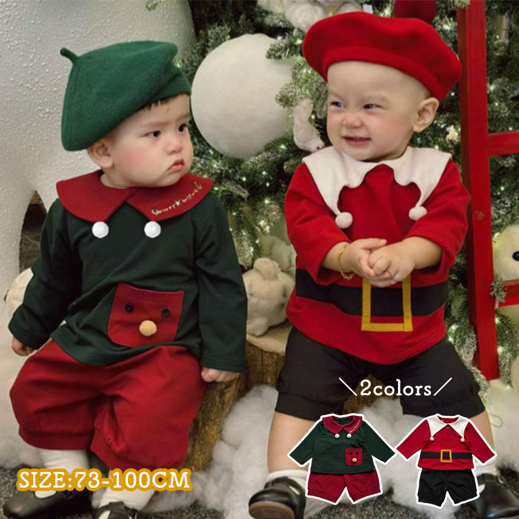 クリスマス ベビー服 おしゃれ かわいい クリスマス 雰囲気満点 キッズ セットアップ レッド グリーン キッズ 73/80/90/100