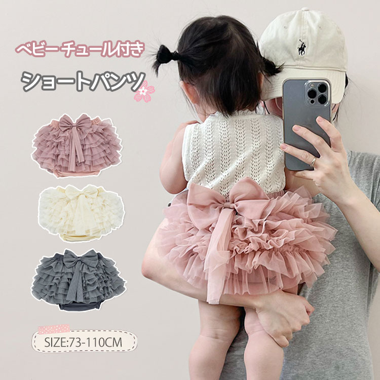 ベビー ブルマ スカート チュール 女の子 新生児 子供服 ふわふわ 柔らか フリル ブルマー ベビー服 赤ちゃん ショート丈 かぼちゃパンツ 無地 出産祝い 短パン 普段着 女児 リボン