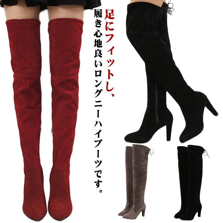 ロングブーツ 黒 ニーハイブーツ ブラック ニーハイ ストレッチ 美脚 ハイヒール 20代 30代 40代 50代