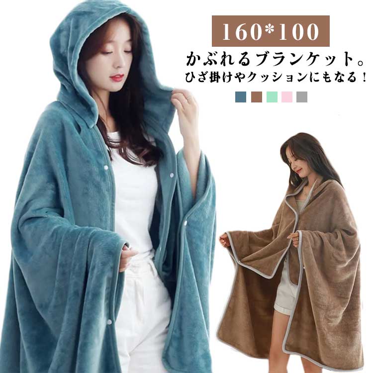 ひざ掛け スナップボタン付き ブランケット フード付き 大判 ふわふわ ハーフケット 厚手 昼寝掛け かわいい おしゃれ フランネル ポンチョ あったかい 着る毛布 冷え対策 防寒 肩掛け
