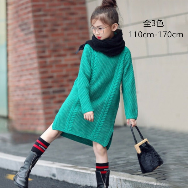 韓国子供服 ニットワンピース 女子 秋冬 セーターワンピース ハイネック 防寒 おしゃれ 暖かい キッズ ガールズ ワンピー ニット 長袖 ロング丈 秋着 冬着 ワンピース カジュアル 可愛い 子供
