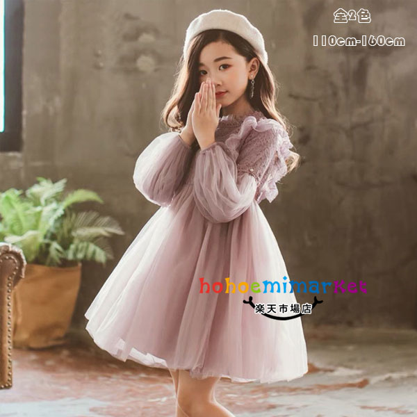 送料無料 女の子 ワンピース 結婚式 入学式 卒業式 ワンピース 受験用 七五三 キッズ 姉妹 長袖ワンピー お姫様 お祝い プレゼント ワンピ お出かけ 春 秋 オシャレ パープル ページュ