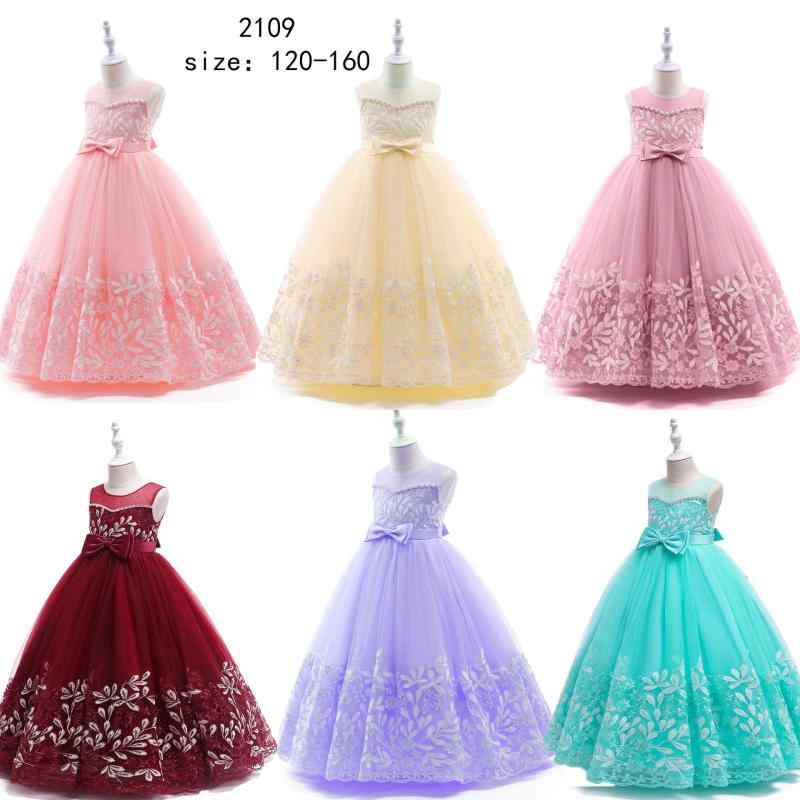 子供用ドレス 女の子 ロング丈 プリンセス 発表会 演奏会 フォーマル レース チュール 米白色 刺繡