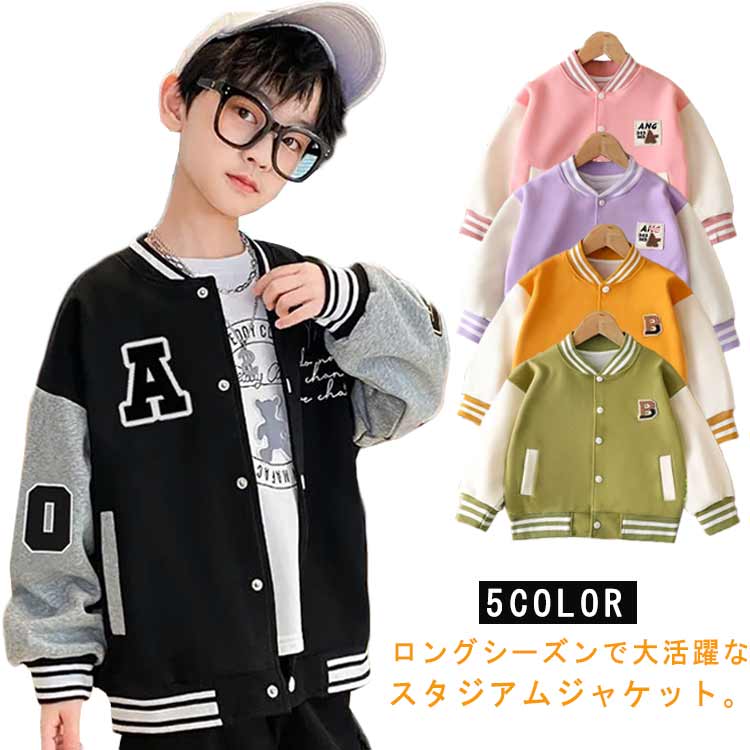 上着 防寒 ジャンパー 子ども服 スタジャン キッズ ジャケット ジュニア 子供服 女の子 90 こども 男の子 袖切り替え ベビー 秋 春 スポーティー 野球服 女子 ブルゾン 小学生 園児 男子