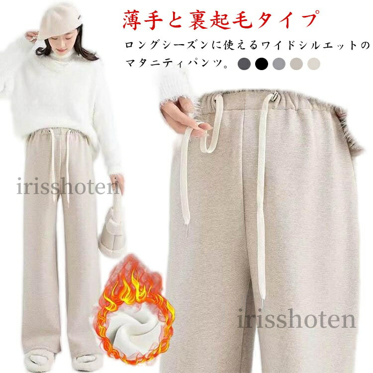 M-3XL ロングパンツ レディース ワイドパンツ 冬 マタニティパンツ 妊娠服 ウエスト調整 産前産後 防寒 部屋着 通勤 裏起毛