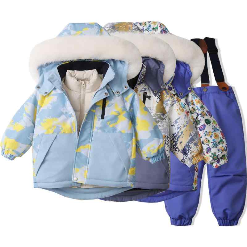 スキーウェア キッズ 男の子 子供 幼児 中綿入り 防水 防風 保温 防寒 切り替えデザイン 3点セット 上下セット フード付き 中綿ライナー 雪遊び アウトドア スノーボード 耐水圧10000mm