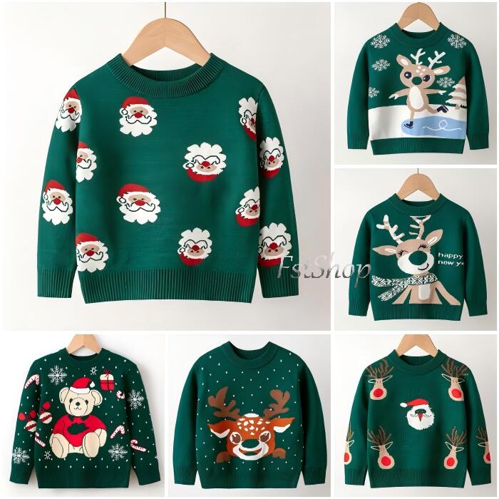 クリスマス洋服クリスマスセーター子供ニットセーター長袖サンタクロースセーター キッズ女の子プルオーバー クルーネック クリスマス風トップス秋冬クリスマスパーティー ニットウェア