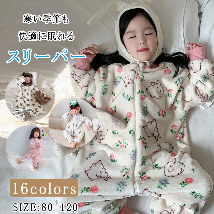 パジャマ キッズ キッズスリーパー 秋 冬 寝袋パジャマ カバーオール 男の子 女の子 長袖 モコモコパジャマ 柔らか 優しい着心地 防寒 保温 オールインワン ベビー服 子供服 80 ファスナー開閉