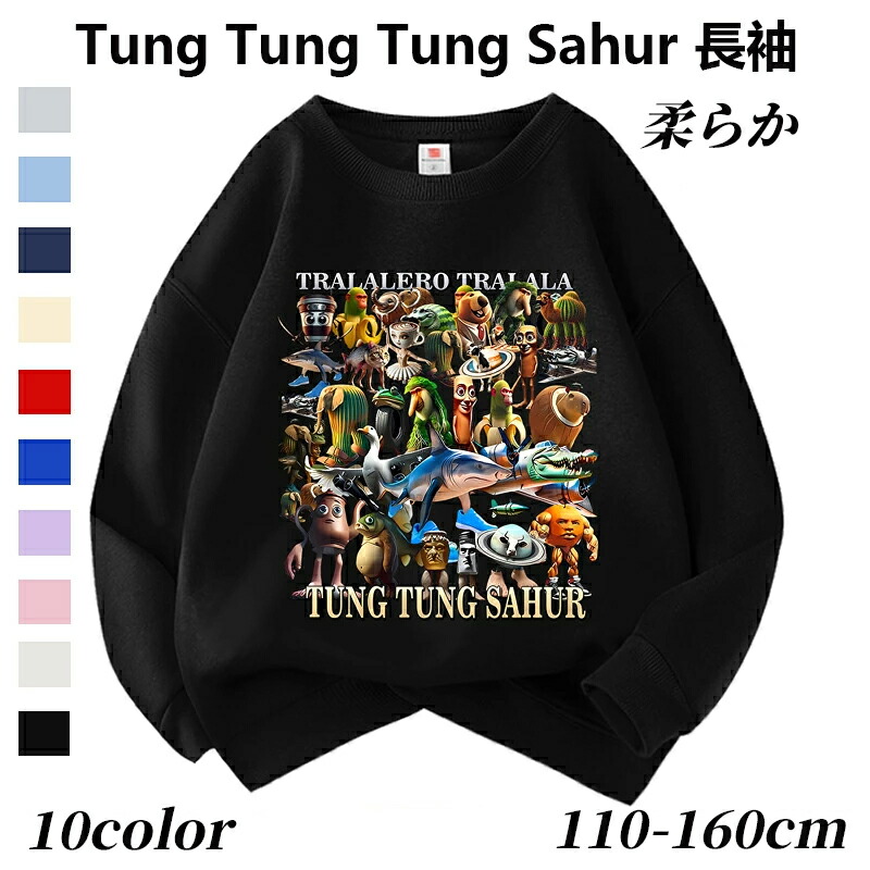 トゥントゥントゥンサフール Tung Sahur Tralalero Tralala トララレロ トラララ Italian Brainrot 綿 スウェットキッズ 長袖スウ 子供服