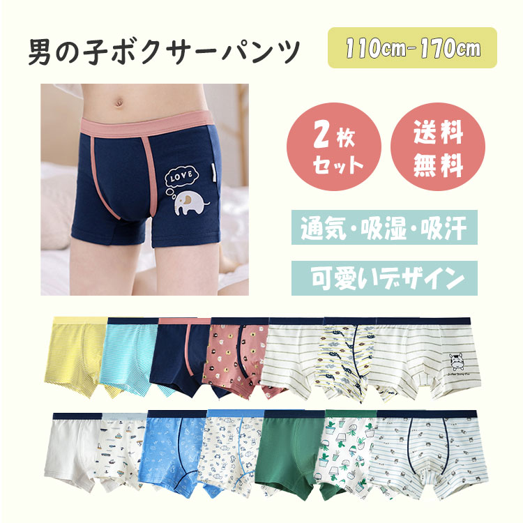 【 送料無料 】 子ども 下着 キッズ ボクサーパンツ 男の子用 2枚セット まとめ買い 男児 可愛い おしゃれ インナー 入園 入学 通園 通学 小学生 中学生 お祝い プレゼント 贈り物