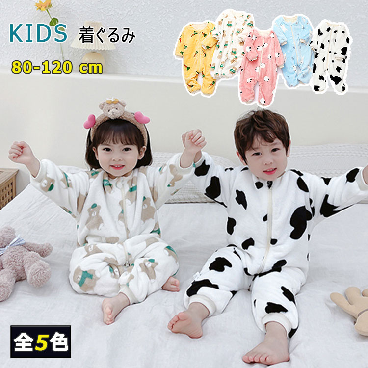 パジャマ キッズ キッズスリーパー 秋 冬 寝袋パジャマ カバーオール 男の子 女の子 長袖 モコモコパジャマ 柔らか 優しい着心地 防寒 保温 オールインワン ベビー服 子供服 80 ファスナー開閉