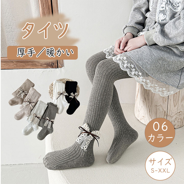 タイツ 女の子 リボン付き リブ 全6色 キッズ ジュニア 子供用 暖かい 防寒 秋冬用 伸縮性抜群 ストレッチ シンプル インナー レギンスパンツ オーバーパンツ 可愛い