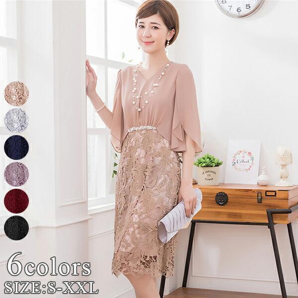 パーティードレス レース ゆったり ミディアム ワンピース フォーマル ドレス 二次会 パーティー 披露宴 結婚式