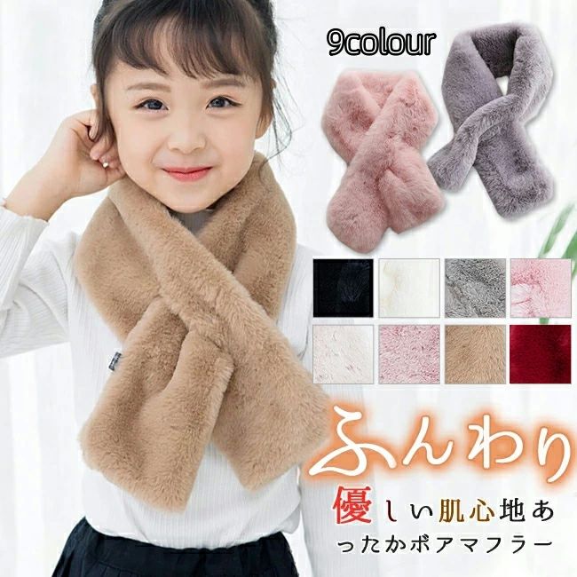 ジュニア 子供 女の子 春秋 おしゃれ 無地 ボリューム 厚手 もこもこ マフラー フェイクファー キッズ 差し込みタイプ