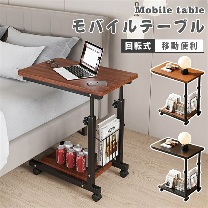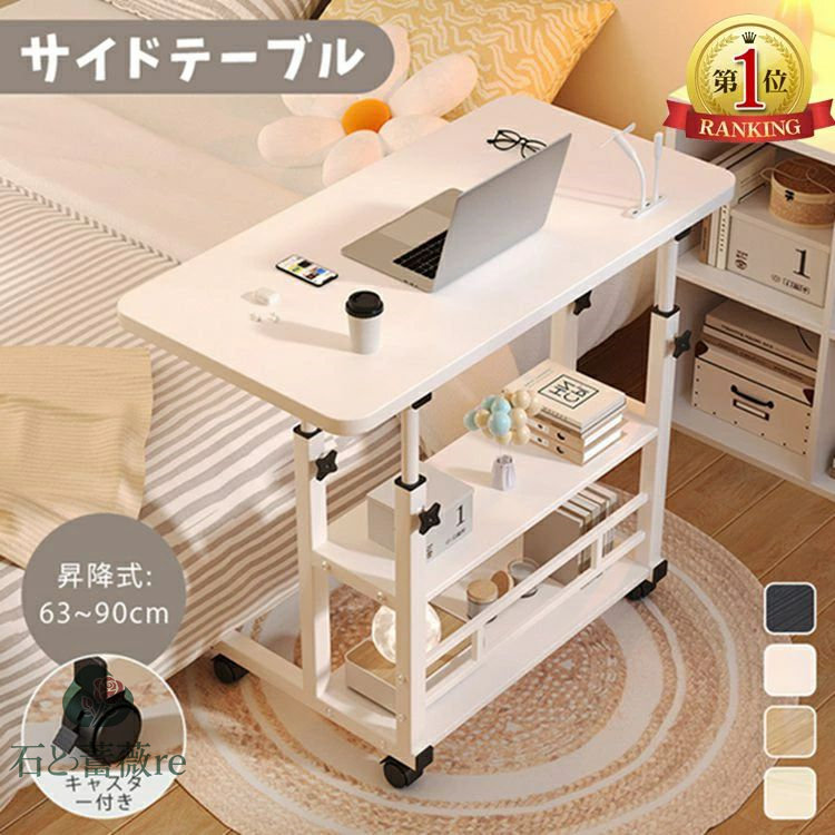 昇降式テーブル サイドテーブル 高さ調節 キャスター付き テーブル 可動式 机 ベッド用テーブル ベッドテーブル デスク パソコンデスク 昇降デスク 学習机 在宅勤務 テレワーク 収納 リモートワーク