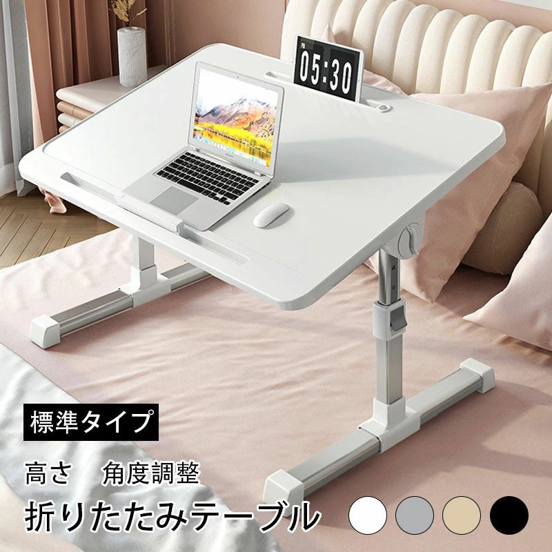 折りたたみテーブル 折りたたみデスク 幅60 奥行40 ノートパソコンスタンド 高さ調整 角度調整 軽量 多機能 スリム コンパクト ロータイプ ローデスク パソコンデスク ベッドテーブル