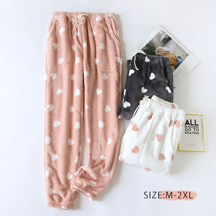 ルームパンツ レディース あったか パンツ もこもこ ルームウェア ハート柄 ふわふわ パジャマ ズボン 暖かい ロングパンツ 防寒 フリース モコモコパンツ 中厚 紐付き ナイト ウェストゴム