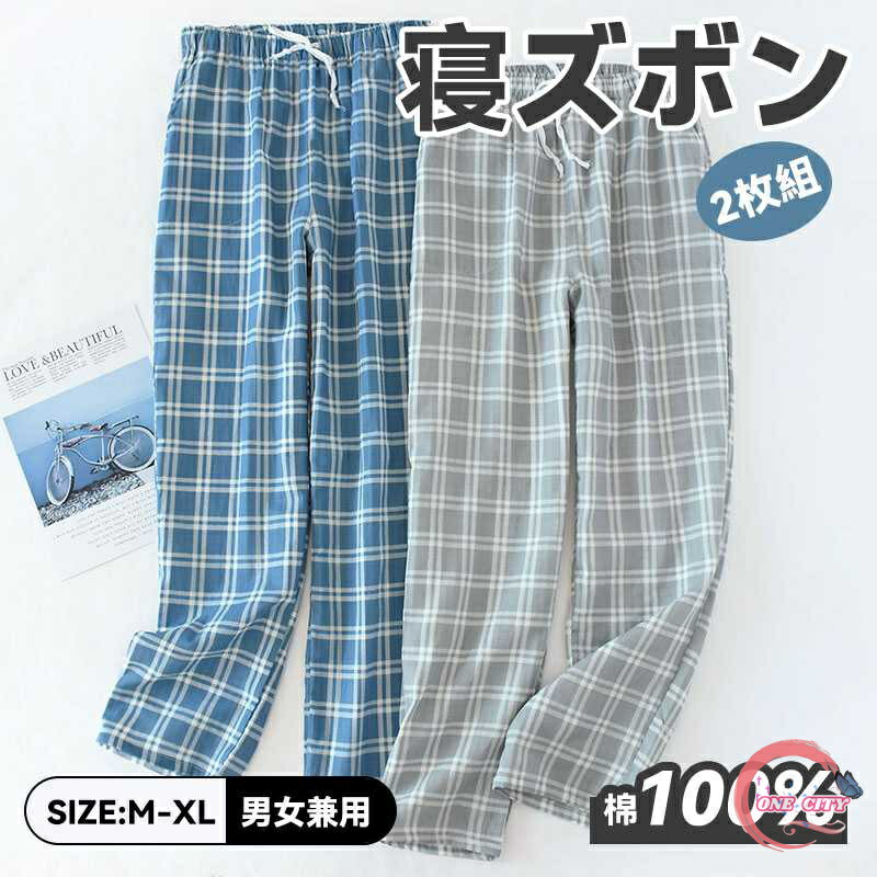 2枚セットパジャマパンツ メンズ 綿100% ルームウェアボトムス 薄手 部屋着 チェック柄 パジャマ下だけ パジャマズボン コットン 肌に優しい 通気 吸汗 リラックスウェア 春 夏 速乾
