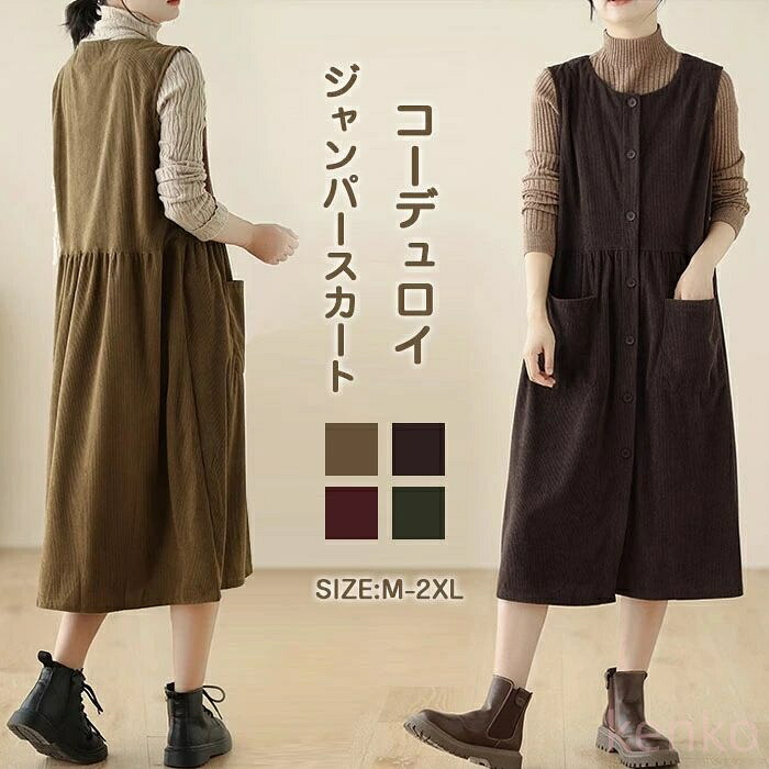 ジャンパースカート コーデュロイ サロペット ミモレ丈 ロング丈 秋冬 オーバーオール コーデュロイジャンパースカート ワンピース