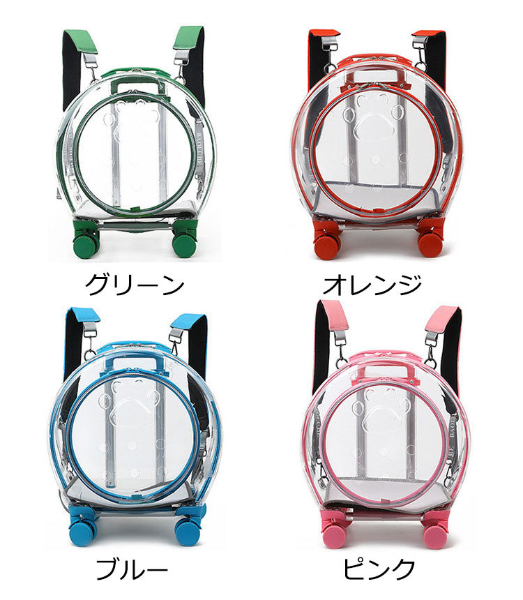 3way ペットキャリーバッグ 透明 猫用品 キャリーバッグ カート リュックキャリー 早い者勝ち グリーン オレンジ ピンク ブルー