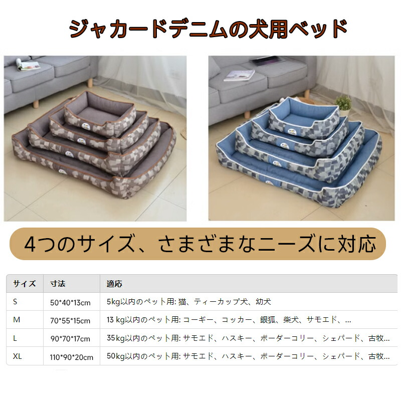 犬ベッド 四季通用 洗える 大型犬用 ペット ペットグッズ 早い者勝ち ブルー◆デニム コーヒー◆デニム 50*40*20cm 70*55*22cm 90*70*25cm 110*90*27cm