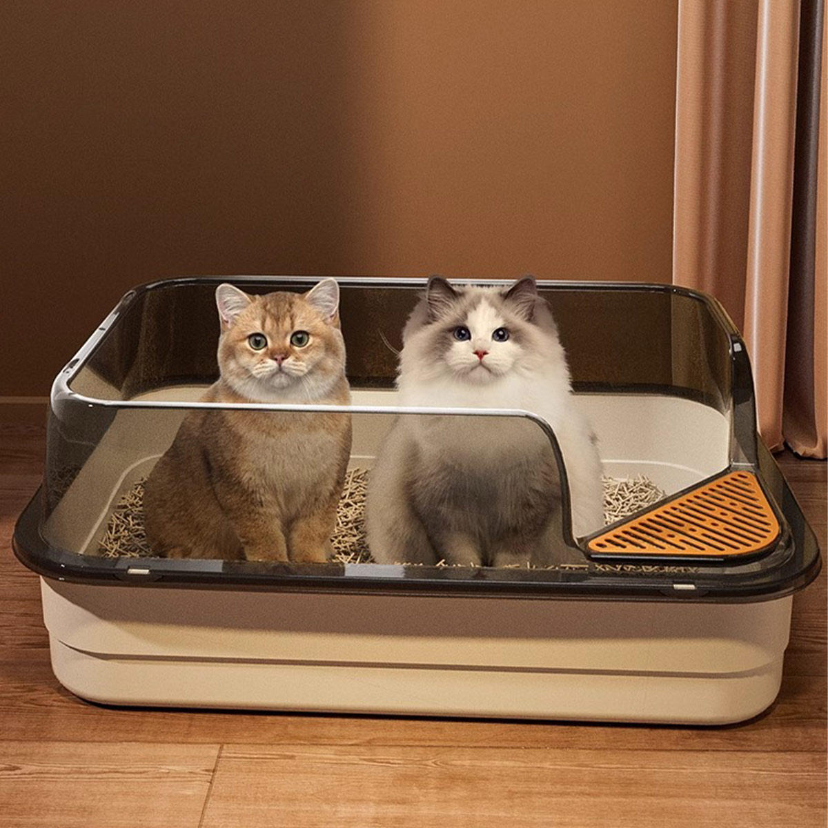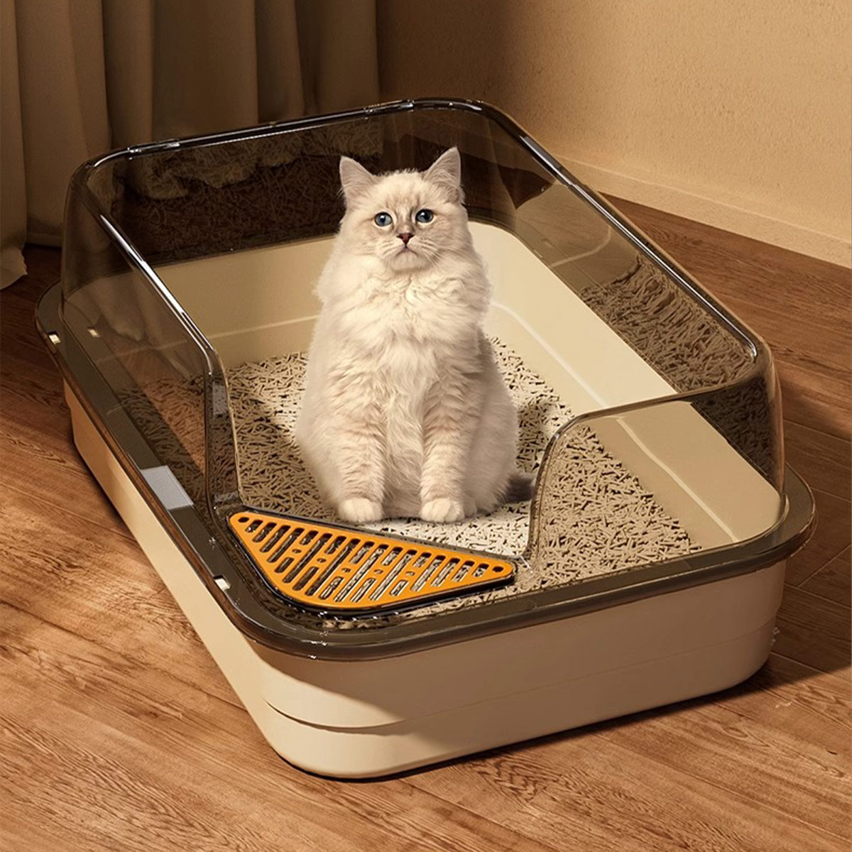 猫トイレ 大型 飛び散らない 大きめ 猫用品 トイレ用品 トレーナー トイレ容器 早い者勝ち ピンク グレー アイボリー イエロー グリーン ブラック