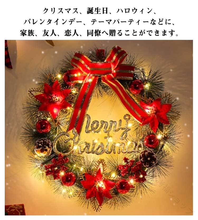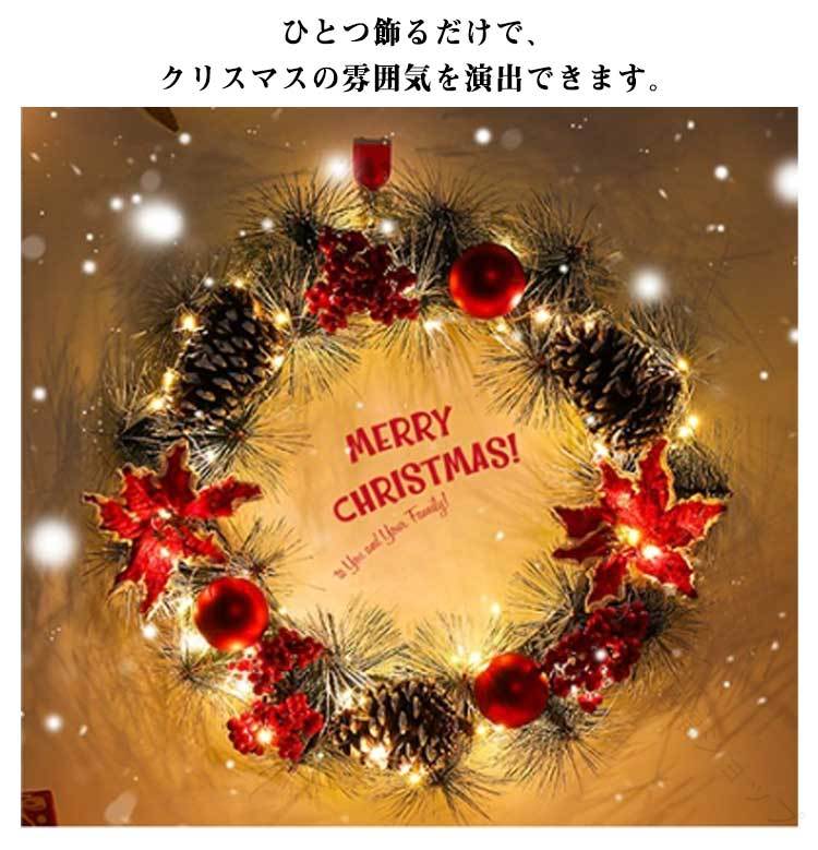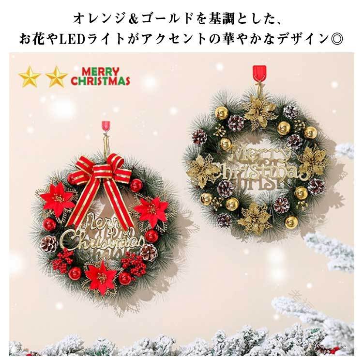 クリスマスリース 40cm LEDライ タイプ1 タイプ2 タイプ3 タイプ4 F(LEDライト付き) F(LEDライトなし)
