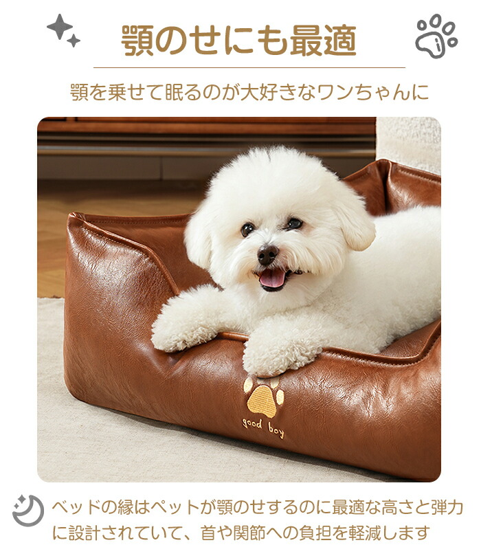 ペットベッド 犬ベッド 顎のせ 猫ベッド ふわふわ 防水生地 合皮 高反発 犬猫兼用 体圧分散 レザー調 ペット ソファー ベッド 犬 猫 いぬ ソファ 老犬 シニア ねこ 首のせ 洗える オール 枕