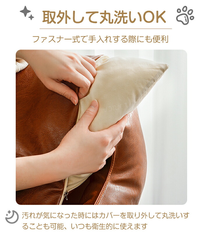 拭き掃除だけでなく、汚れが気になった時にはカバーを取り外して丸洗いすることも可能です。ファスナー式で着脱もラクラク。目に見えない汚れもしっかり洗い流せるので、皮膚がデリケートなペットにも安心です。