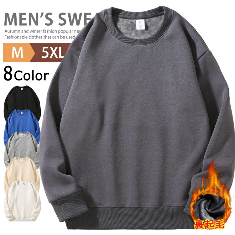 お買い物トレーナーメンズ秋冬スウェット裏起毛長袖無地シンプルゆったり大きいサイズ全14色s-3xlメンズファッション トップス スウェット トレーナー