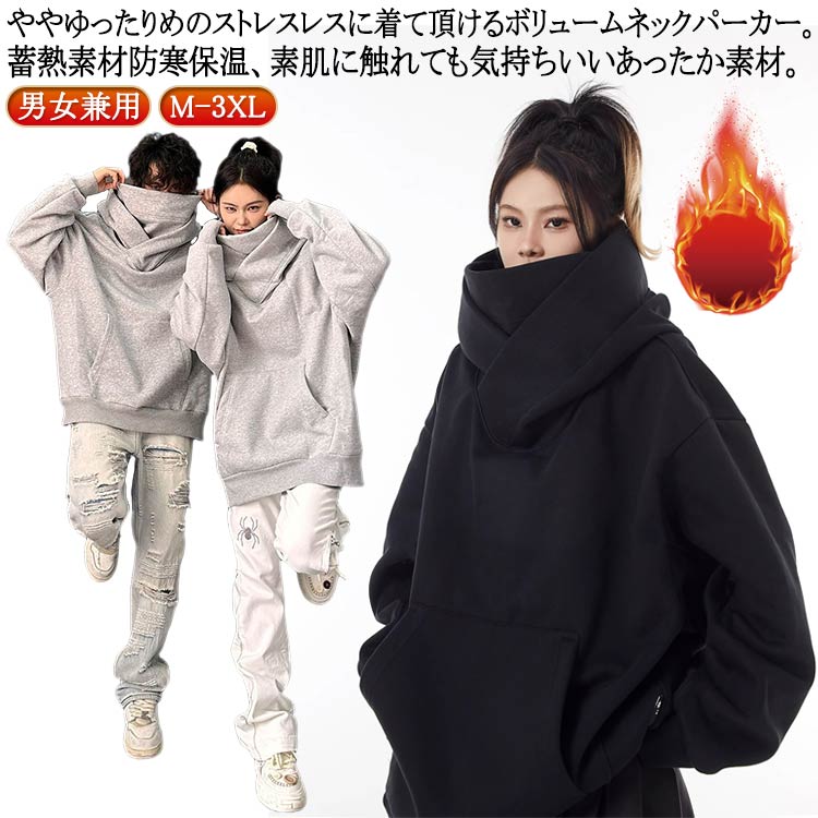 ボリュームネックパーカー 男女兼用 レディース 裏起毛 フード付きパーカー 春 保温 秋 防寒 機能的 冬 ヒップホップ ハイネックパーカー オーバーサイズ タートルネック ハイネッ メンズ