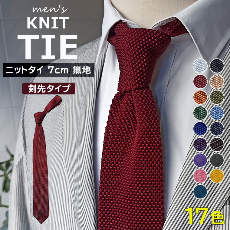 ニットタイでは珍しい剣先タイプ♪おしゃれな方におすすめ ニットタイニットネクタイ無地ネクタイ剣先タイプ7幅ポリエステルニットクールビズビジネスカジュアル結婚式パーティー全17色