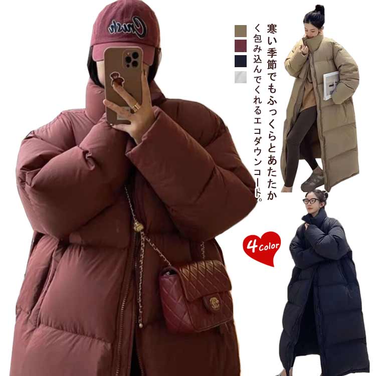 ロング スタンドカラー 暖かい ロングコート レディース ハイネック ベンチコート エコダウン ダウンコート 軽量 防寒 中綿コート ボリューム 通学 ジャケット 大きいサイズ 韓 中綿