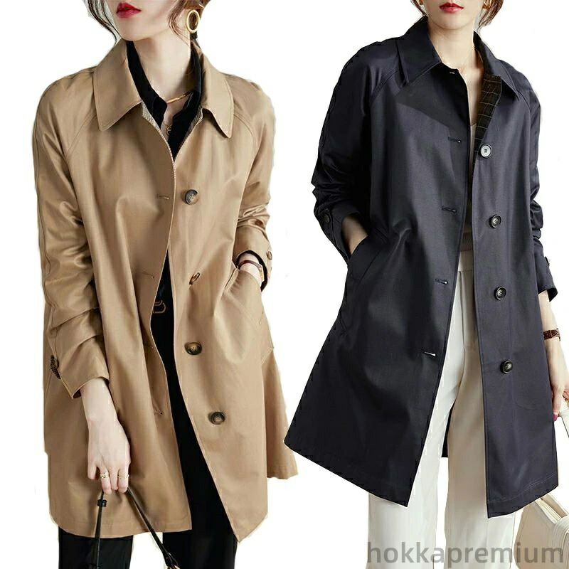トレンチコート レディース コート スプリングコート ハーフコート ステンカラーコート 折り襟 長袖 アウター ミディアム丈 秋のコート 春 秋 通勤 軽量 可愛い 20代 30代 40 大きいサイズ