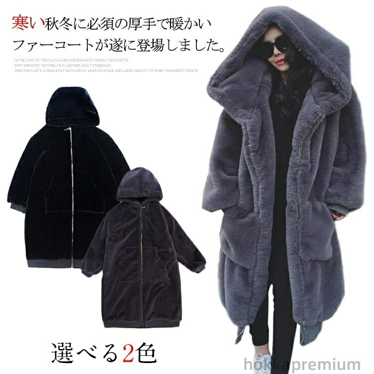 ファーコート レディース ボアコート コート ロング ボリュームカラー フード付き 厚手 ファー コーデ ロングコート