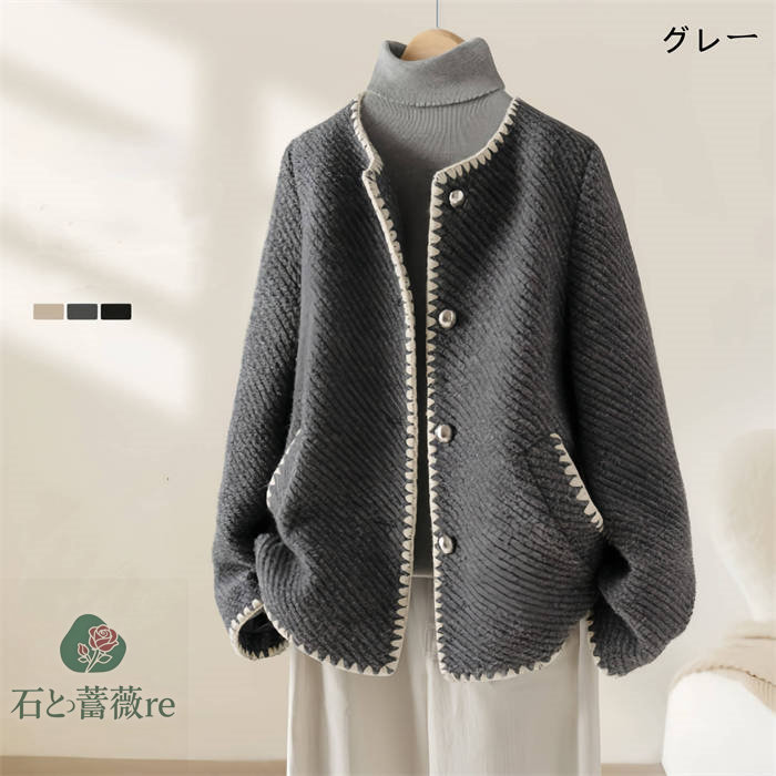 ツイードジャケット コート レディース 新作 ラシャ 配色 アウター 長袖 厚手 中綿 ジャケット ラシャコート 秋 冬 ツイード 無地 デザイン感 トップス ゆったり カジュアル エレガ ノーカラー