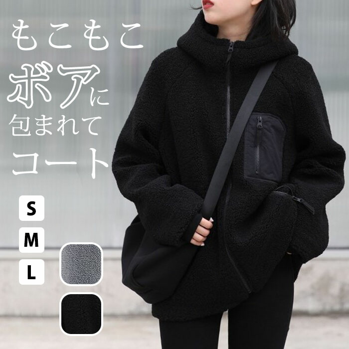 ボア ブルゾン パーカー レディース 裏起毛 ボアコート 防風 コート 長袖 ふわふわ もこもこ 無地 ゆったり オーバーサイズ アウター 大きめ 防寒 ポケット付き カジュアル トップス 極暖