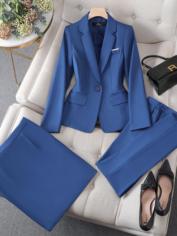 スーツ レディース 秋冬 テーラードジャケット セットアップ パンツ スカート 長袖 無地 ポリエステル 通勤 オフィス きれいめ エレガント 上品 ブルー ブラック 4XL グレー