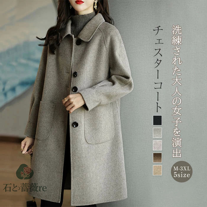 チェスターコート レディース 秋冬 冬 アウター ロングコート 秋 きれいめ カジュアル 大きいサイズ コート 長袖 無地 体型カバー シンプル 暖か 防風 防寒 春