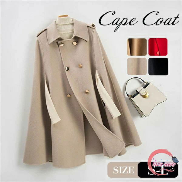 ケープ コート マントコート ウール混ケ ポンチョ アウター ミディアム丈 赤 黒 キャメル ベージュ ゆったり レディース 女性 韓国風 秋服 冬服 体型カバー おしゃれ エレガント 防寒着