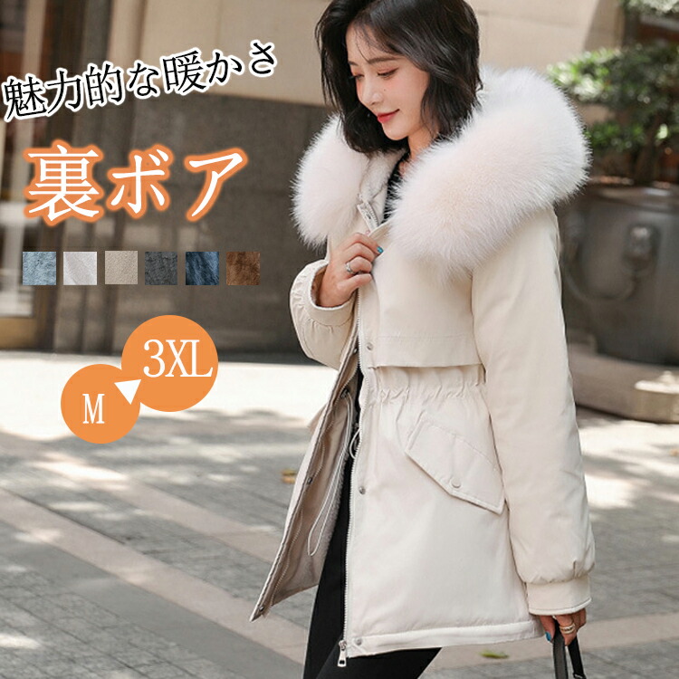 裏ボア コートレディース 暖かい モッズコート 大きいサイズ ロング 中綿コート レディース 軽い ふんわり フード付き ハーフコート 体型カバー 防寒 保温 マウンテンパーカ 裏 フード付きパーカー