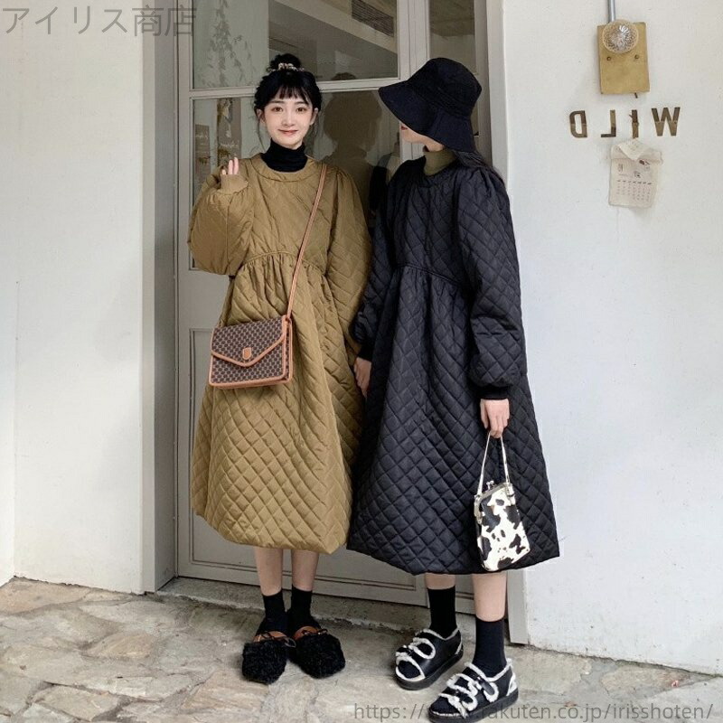 キルトワンピース コート オーバーコットンワンピ キルトワンピ キルティングコート 大人アウター ふんわり 大人可愛い ママコーデ ママファッション 韓国系 オルチャン トレンド 新作 20代 人気