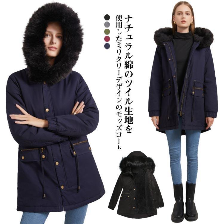 レディース 中綿コート 裏ボア ツイル生地 中綿入り コート 綿 ミリタリー 冬 モッズコート 厚手 ファーフード付き 保温 きれい ミリタリーコート