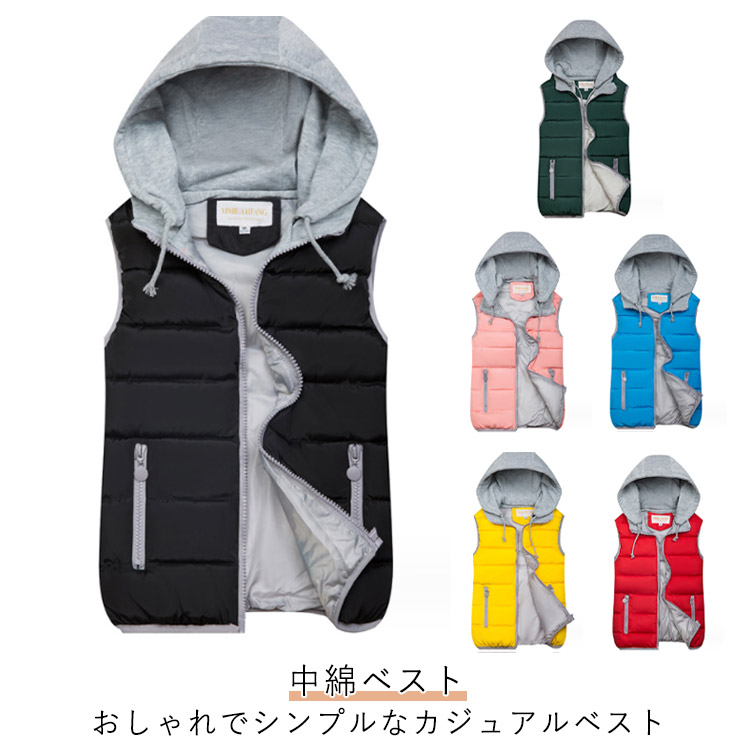 ~3 中綿ベスト フード付き カジュアル 重ね着 防寒対策 あったか