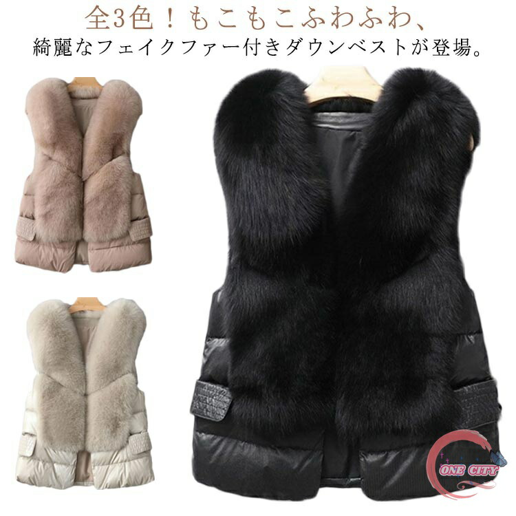 ファーベスト レディース ダウンベスト 異素材切替 ベスト ダウンジャケット ノースリーブ すわふわ もこもこ ジャケット ブルゾン 秋冬 フェイクファー