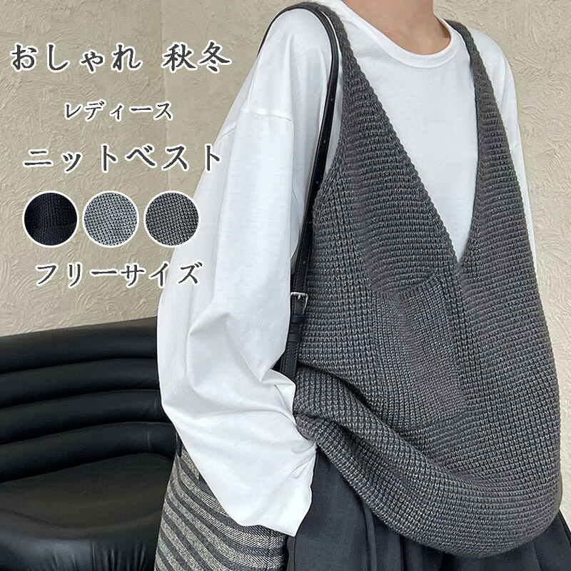 ビスチェ キャミソール ニット レディース ベスト レイヤード ネック トップス プルオーバー ざっくり編み 重ね着 着回しシンプル 抜け感 暖かい おしゃれ 秋 冬 20代 30代 40代