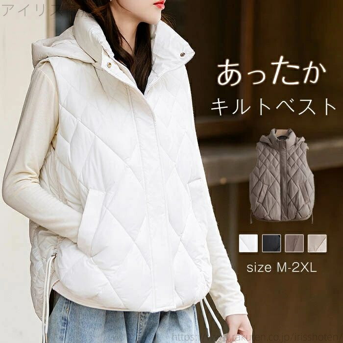 キルティングベスト レディース ベスト 秋冬 中綿ベスト 軽い トップス 前開きベスト ノースリーブ ライトアウター 無地 シ 羽織