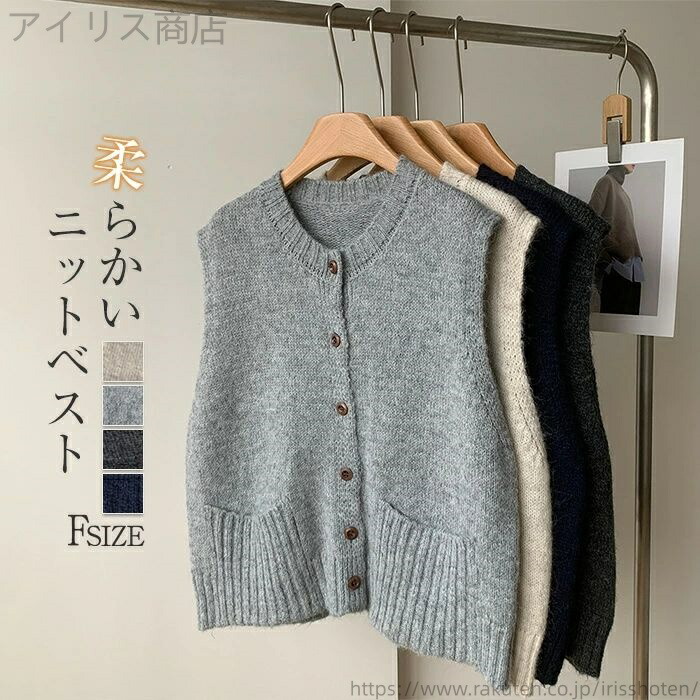 体型カバー トップス 定番 リブニット ベスト ニット 前開き ボタン 冬 春秋 サマー 春 コーデ レディース 秋